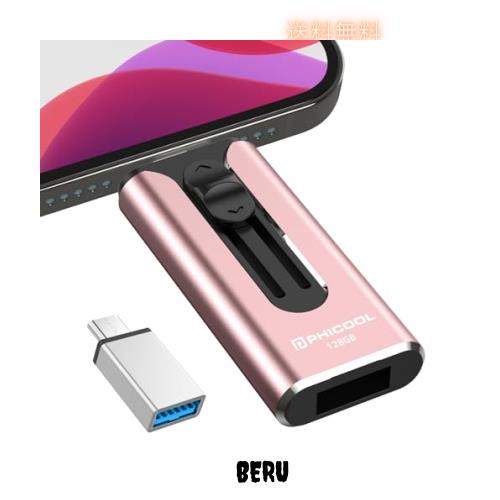 【専用アプリ不要 データ移行簡単】4in1 iPhone対応 USBメモリ アプリ不要 128GB データ 高速 バックアップ 写真保存 外付け USB iOS/Ty