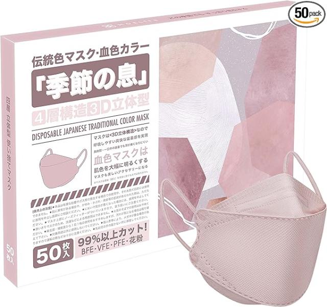 【血色カラー 不織布マスク】伝統色マスク 不織布 血色マスク KF94 カラーマスク 立体マスク 使い捨て 高機能マスク おしゃれ ダイヤモンドマスク メガネが曇りにくい 口紅が付きにくい 耳が痛くならない 息がしやすいマスク ウイルス飛沫対策 薄色 大人用 マスク