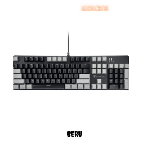 ◆商品名:Merdia メカニカル式ゲーミングキーボード 全104キーボード US配列 USB有線キーボード LEDバックライト付き (茶軸-グレーとブラック)