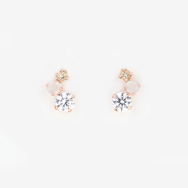 キュービックジルコニアにムーンストーンとハニークォーツを組み合わせたナチュラルな幸福感のある色合いが美しい天然石を使ったプチサイズのピアスです。
