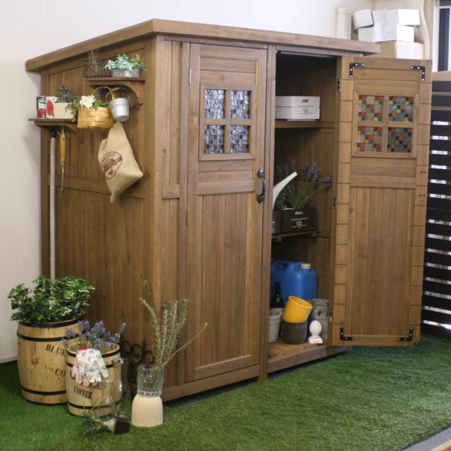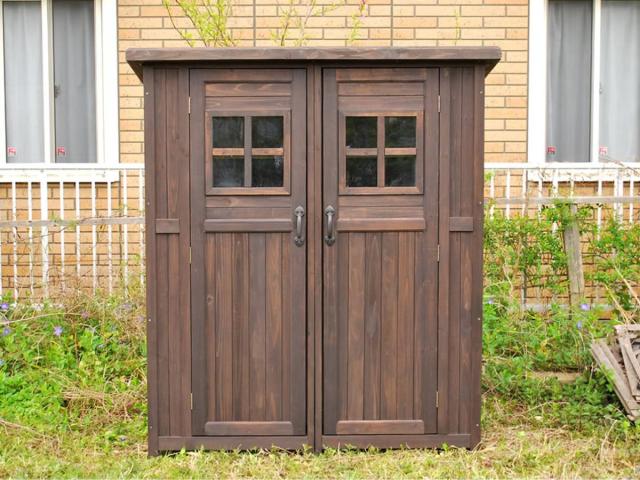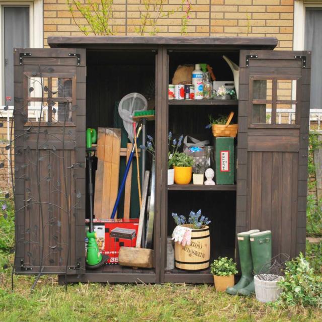 ナチュラルなお庭に馴染む木製収納庫 大型