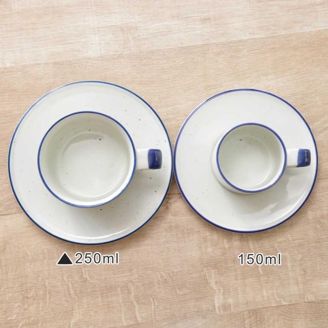 こちらは250mlのコーヒーカップと直径16cmのソーサーのセットです。朝の1杯や、お仕事中にもぴったりのサイズ感。じっくりと淹れたコーヒーを愉しみたくなりますね。
