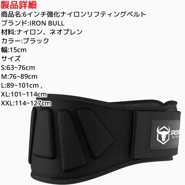 IRON BULL 6インチ強化ナイロンリフティングベルト アイアンブル リフティング 男女兼用 フィットネス クロストレーニング パワーリフティング用ワークアウトバックサポート 腹圧ベルト 筋トレ サポーター 腰 運動