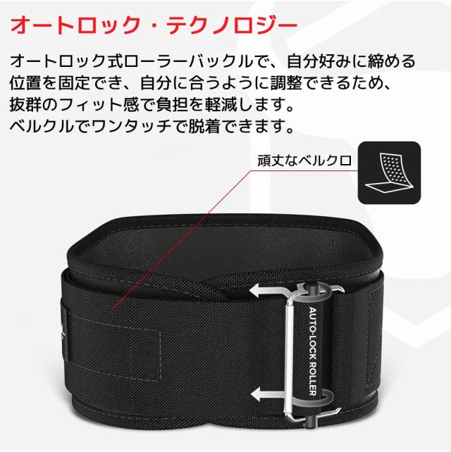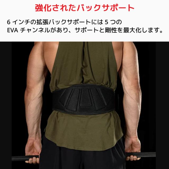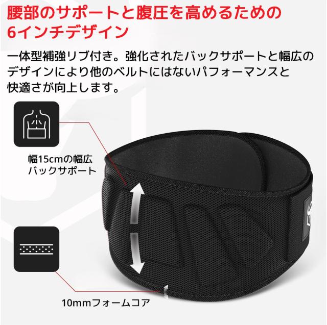 腰部のサポートと腹圧を高めるための6インチデザイン