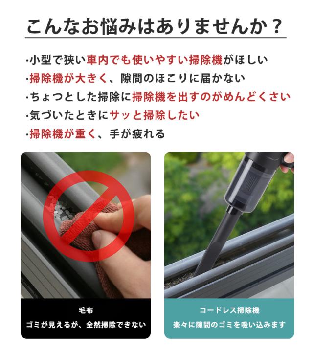 車載掃除機 車用 ハンドクリーナー 強力吸引 充電式 車内 パワフル 小型 クリーナー 低噪音?策 狭い 便利 お家 車 コードレス掃除機 ハンディー掃除機 電動 ハイパワー 静音 業務用 キーボード掃除 車内清掃 家具 家庭用 多機能 長時間稼働 ペット毛掃除 オフィス 会議室 乾湿両用 小型掃除機 卓上
