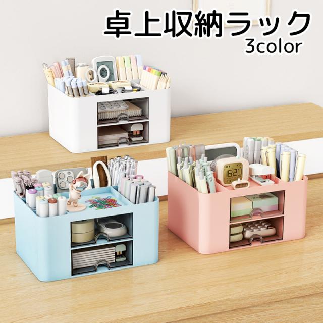 卓上収納ボックス 収納グッズ ホワイト ピンク ブルー シンプル 整理整頓 小物入れ ペン立て