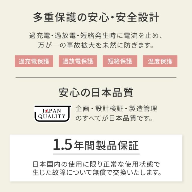 ■保護機能:過充電(電圧 / 電流)保護、過放電(電圧 / 電流)保護、短絡(ショート)保護、温度保護