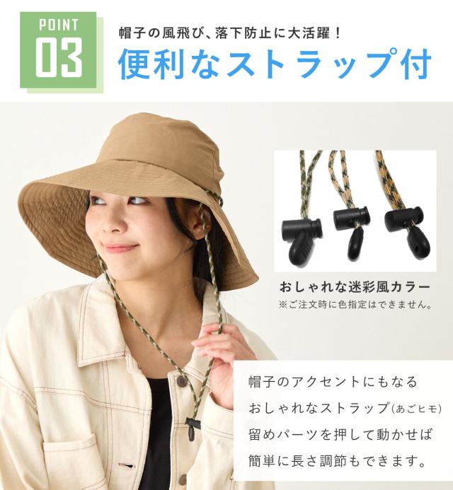 帽子の風飛びや落下防止、自転車での着用も安心です。