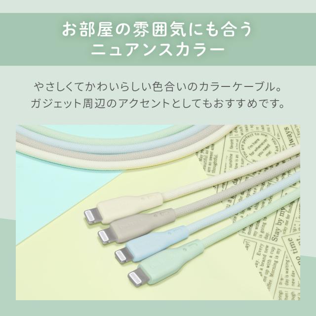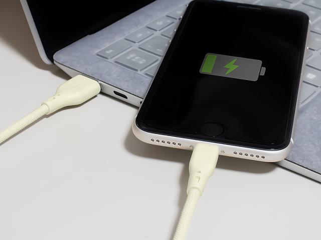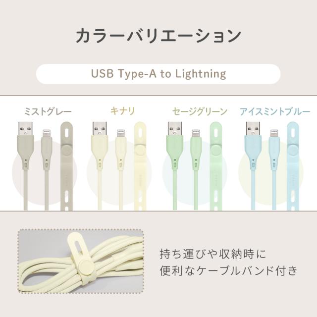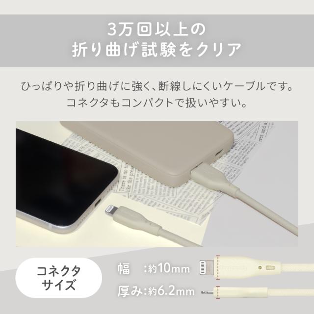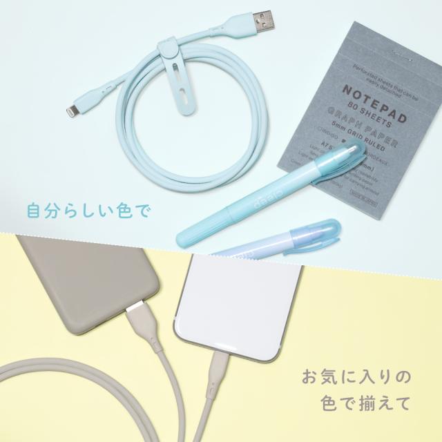 USB Type-A to Lightning シリコンケーブル 急速充電2.4A/データ転送 超やわらかで断線に強い 耐屈曲3万回以上