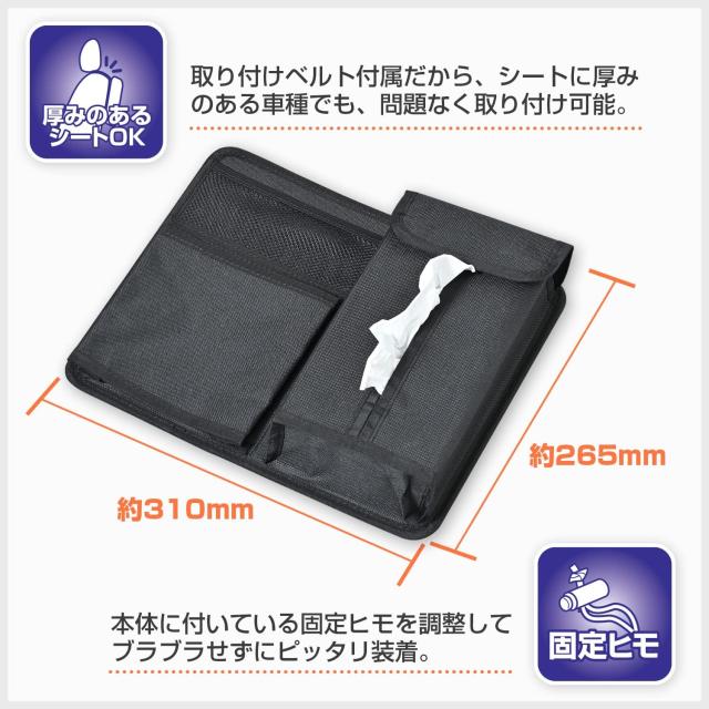 WA103 コンパクト シートバック ポケット | ティッシュボックス 便利 シートバックポケット ペットボトル タブレット 菓子 小物 収納 リアトレイ ゴミ袋フック ビニール袋 バッグポケット ティッシュ ティッシュ箱 収納ケース CD スマホ