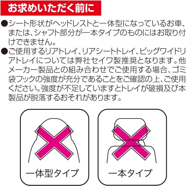●別売りのリアトレイに装備されているゴミ袋フックに取り付けが可能です。(幅317mmまで)
