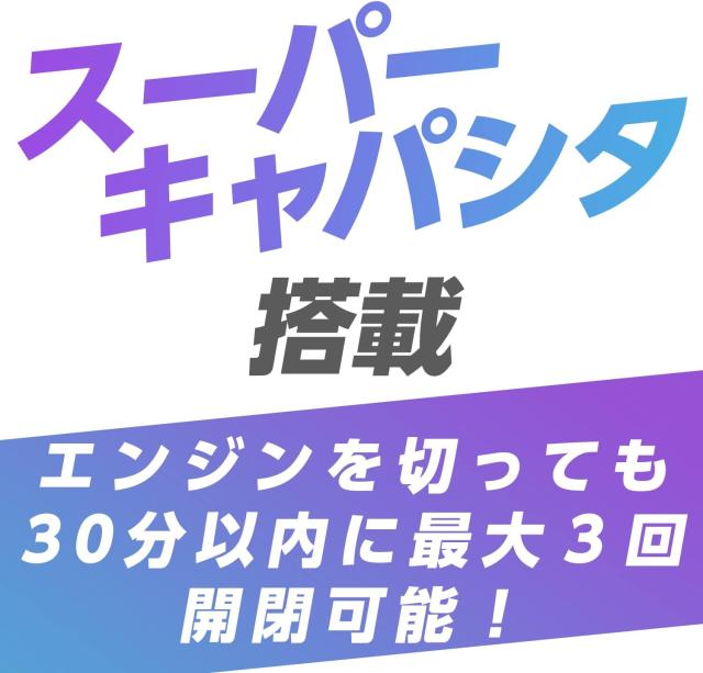 ●両サイドにあるリリースボタンを押すとアームが開きます。エンジンを切ってから約30分以内は内蔵キャパシタによって、アームの開閉が3回可能です。