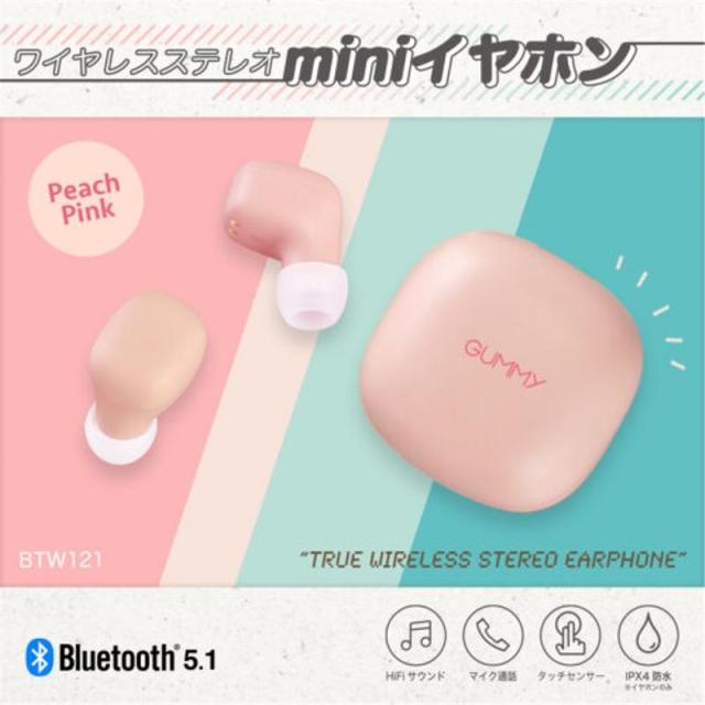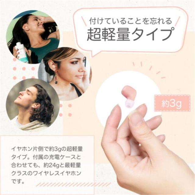 BTW121 Bluetooth ステレオ ミニ イヤホン ピンク | Bluetooth ver.5.1 ワイヤレス ハンズフリーイヤホン イヤホンマイク マイク USBケーブル 充電ケース 超軽量 Bluetoothイヤホン 収納ケース 充電