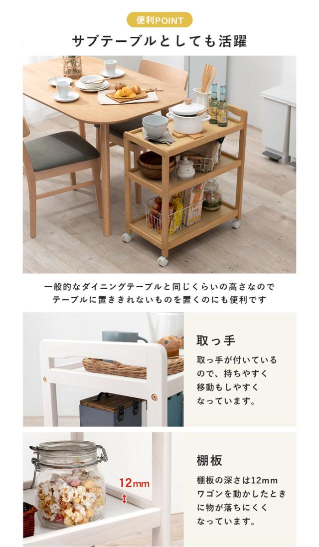 萩原 HAGIHARA 家具 インテリア キッチンワゴン 台所 食品 食材 キャスター 移動 サイドテーブル 食卓 食事 収納 整理 引っ越し 模様替え 家族 ファミリー 一人暮らし
