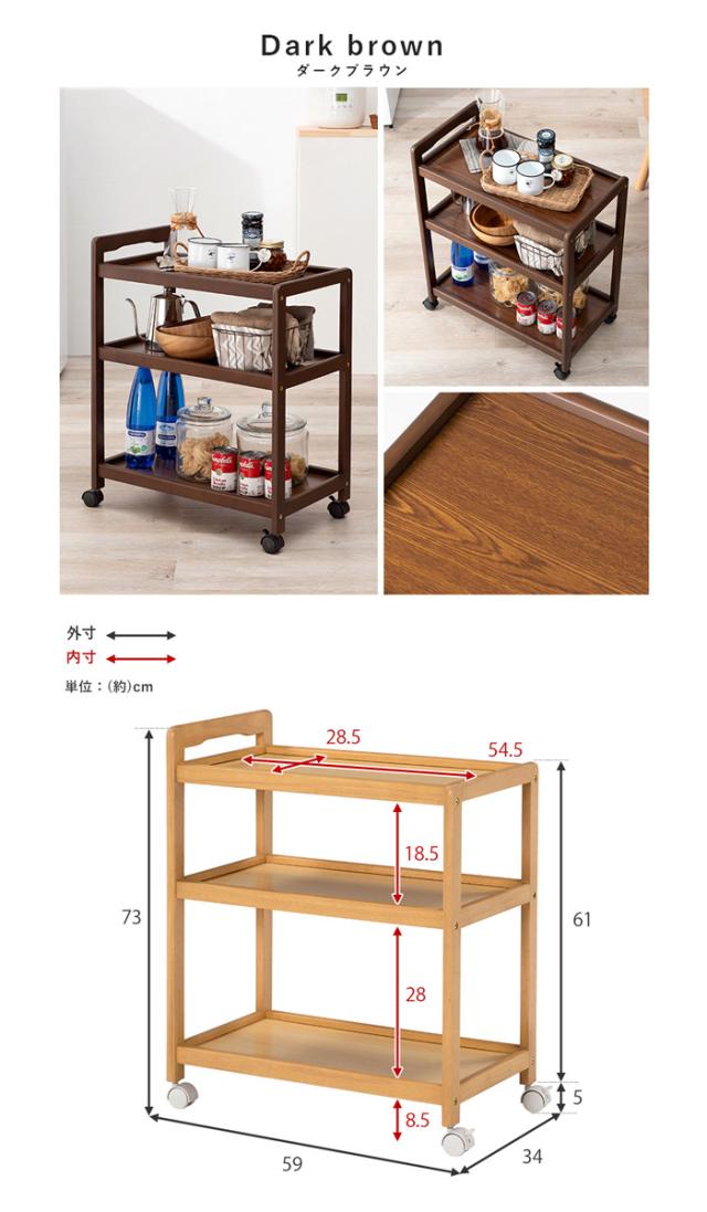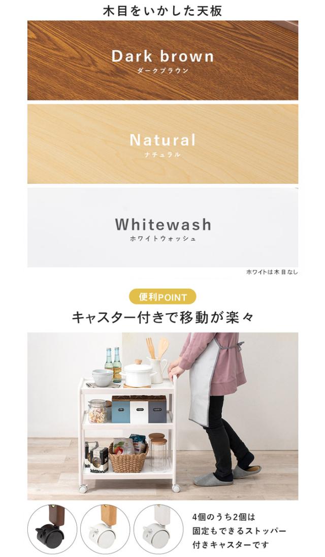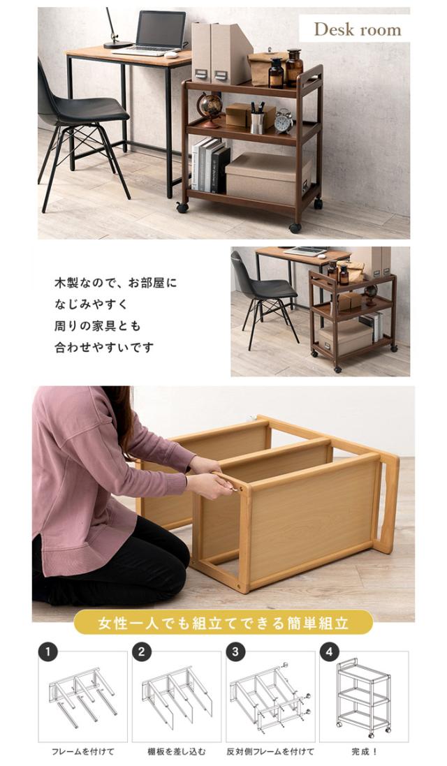 ■商品名:キッチンワゴン 木目調 l小物 整理 収納 キャスター付き サブテーブル