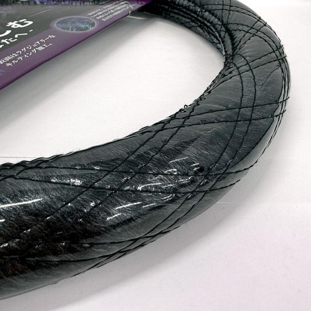 ハンドルカバー 黒愉 ブラック Sサイズ 約36.5cm〜37.9cm キルティング加工 グラデーション ステアリングカバー 山正 110171