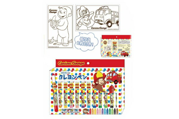 【送料無料】【おさるのジョージ】ぬりえ付きクレヨンペン【消防車】【ジョージ】【ひとまねこざる】【Curious George】【絵本】【アニメ】【キャラクター】【ペン】【筆記