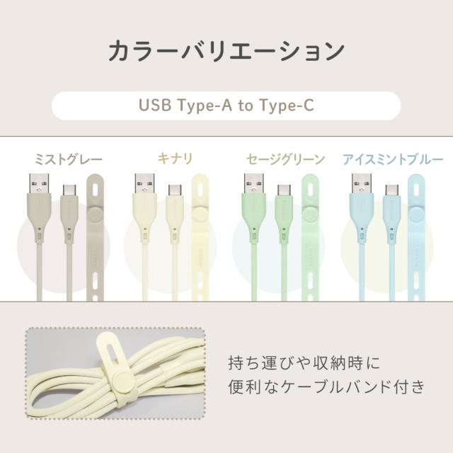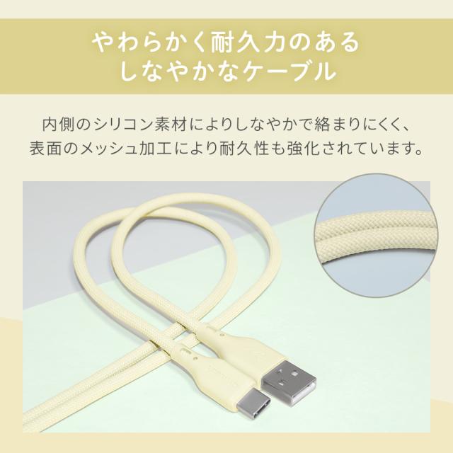 USB Type-A to USB Type-C シリコンケーブル 急速充電3A/データ転送 超やわらかで断線に強い 耐屈曲3万回以上