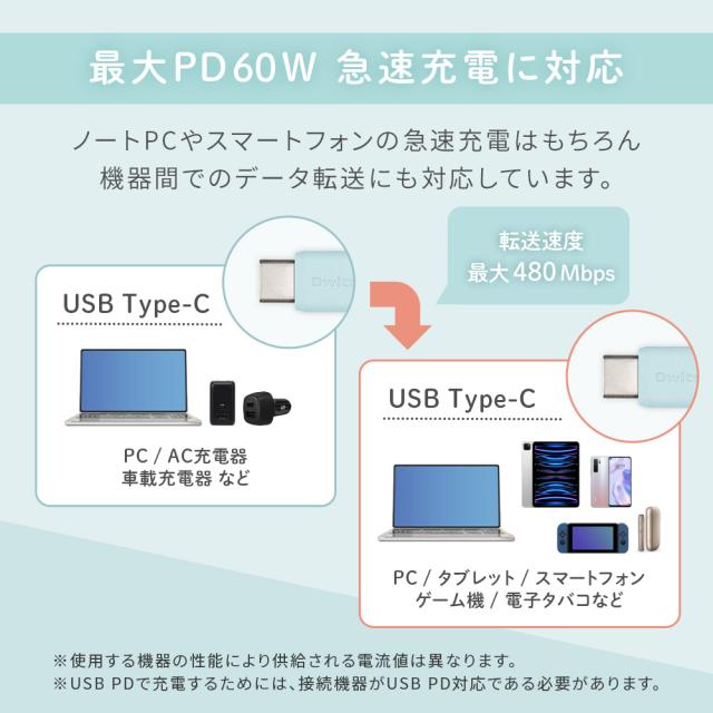 USB Type-C to USB Type-C シリコンケーブル PD60W充電/データ転送 超やわらかで断線に強い 耐屈曲3万回以上