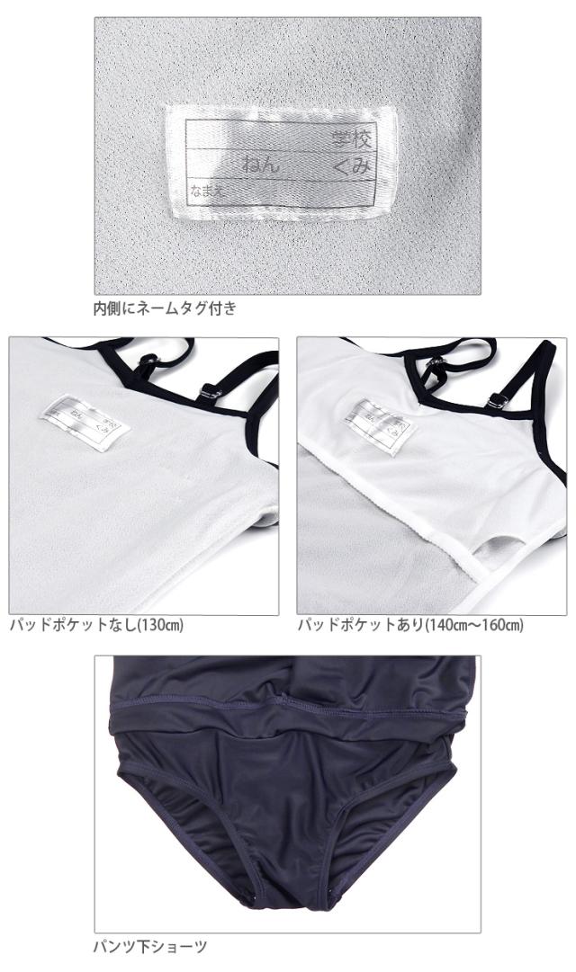 140cm以上のサイズはパッドポケットが付いているので、ジュニア女児にも安心のデザイン。