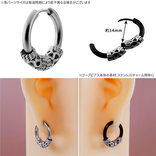 ゴシック チャーム ワンタッチ リング フープ ピアス 18G サージカルステンレス ヘリックス 軟骨ピアス ボディピアス キャッチレス