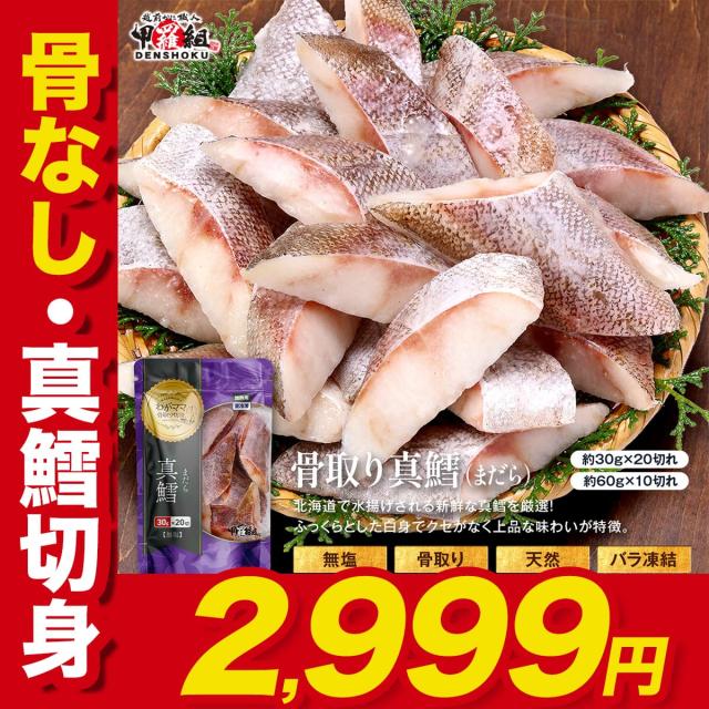 無塩 骨取り 真だら 切身 (約30g×20切れ/約60g×10切れ) 2個で600円OFF!3個で1,200円OFF!4個で2,000円OFF! タラ たら 切り身 骨なし 【わがママ骨取り切身】 鱈 真ダラ 真鱈 弁当 朝食