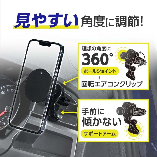 ●エアコンクリップはボールジョイントで角度調節が可能で、360°に角度調節できます。