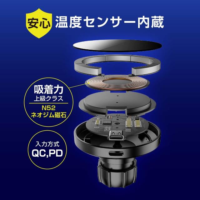 ●ネオジム磁石でiPhoneをホールドしながら無線充電可能なApple iPhone12以降用の専用充電ホルダーです。