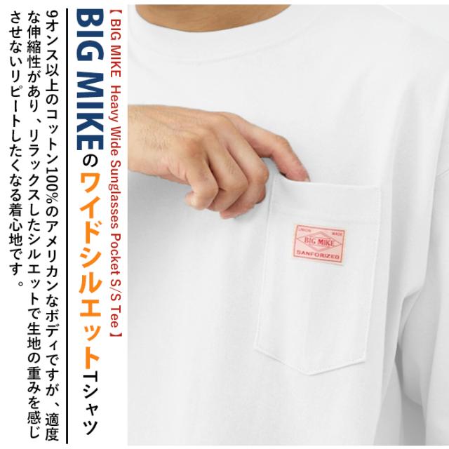 BIG MIKE ビッグマイク ヘビーワイド サングラスポケット S/S Tシャツ メンズ ブランド 9オンス ヘビーウエイト アメカジ ヴィンテージ 綿100% サングラス ブラック ホワイト グリーン ブルー プレゼント ロゴ 半袖 Tシャツ クルーネック ブランドロゴ トップス ビンテージ ギフト カットソー ビックマイク 白 ブラック 春 夏 カジュアル 大人