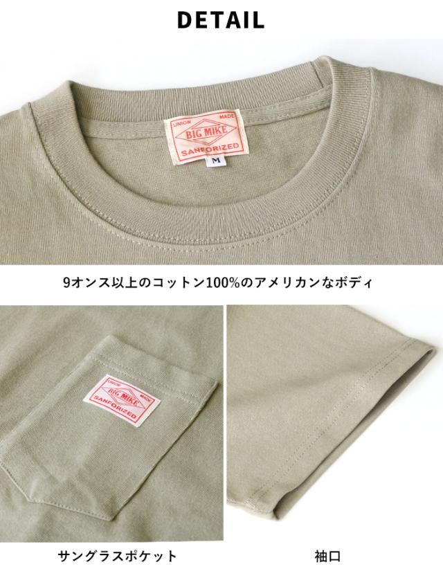 半袖 tシャツ メンズ BIG MIKE ビッグマイク ヘビーオンス ゆったり ワンポイント ワイド サングラスポケット S/S Tシャツ 102328520 ブランド 9オンス ヘビーウエイト アメカジ ヴィンテージ サングラス ブラック ホワイト ベージュ プレゼント