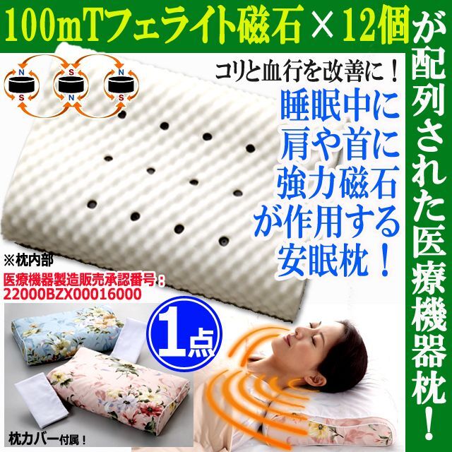 敬老の日 プレゼント 100mTフェライト磁石12個配列!医療機器承認磁気枕[1点] (疲労 睡眠回復 日本製 ポリウレタン)