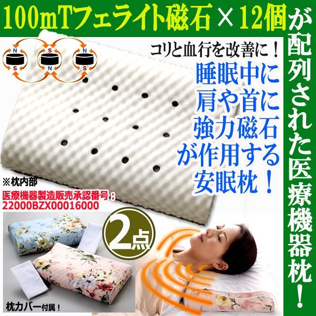 敬老の日 プレゼント 100mTフェライト磁石12個配列!医療機器承認磁気枕[2点] (疲労 睡眠回復 日本製 ポリウレタン)