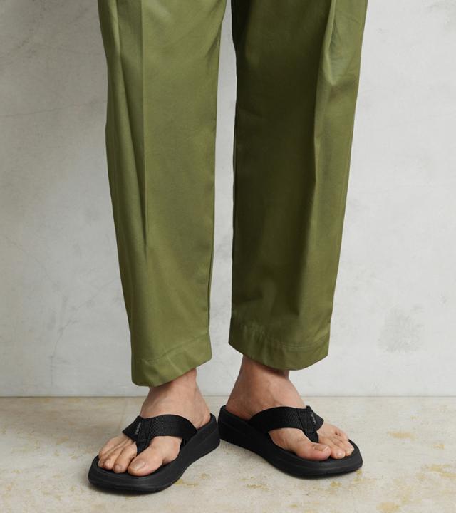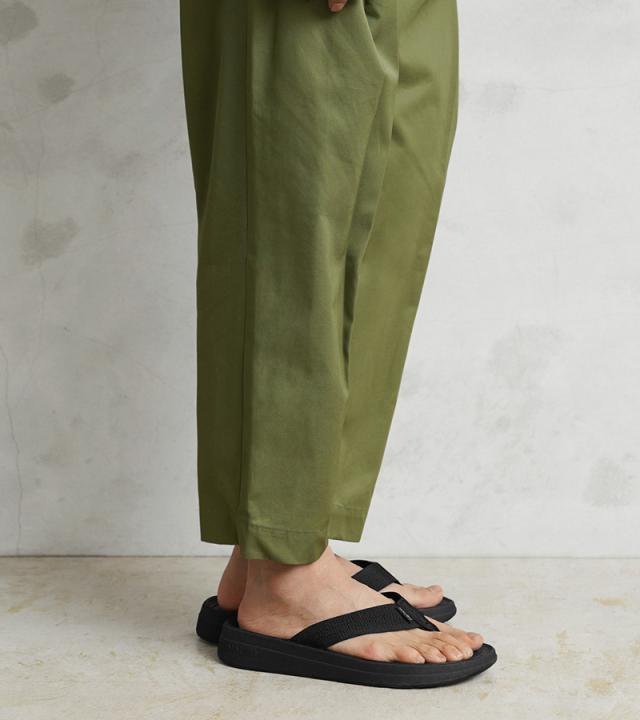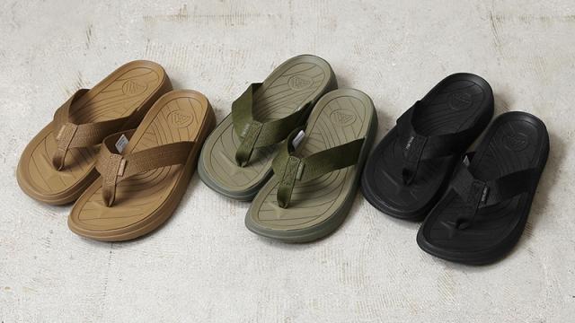 さっと履けるミニマムなトングデザインに、鼻緒部分にはポリエステル生地を使用し快適な履き心地を実現。しなやかなストラップ部分がほどよく足とフィットし、リラックスシーンにも最適な一足です。