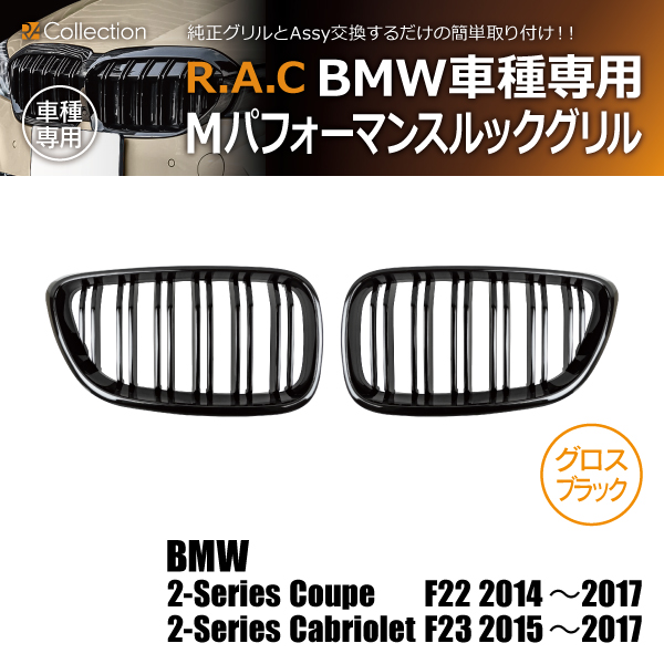 【在庫限】BMW 2-シリーズ F22 クーペ 2015-2017 ※F87 M2にも取り付け可 R.A.C Mルック ツインフィン グリル グロスブラック(商品コード:140008)