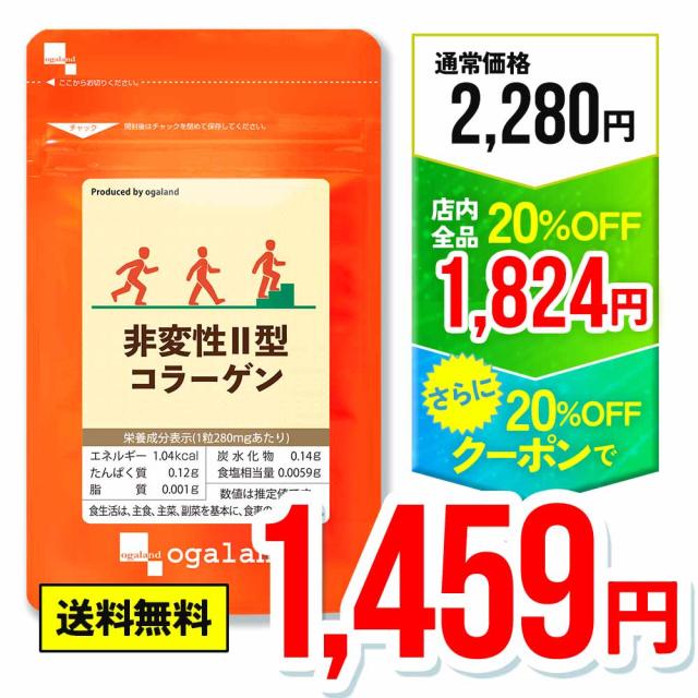 【W割引中!!】非変性II型コラーゲン(約1ヶ月分)送料無料 ダイエット サプリメント サプリ 非変性2型コラーゲン コラーゲン 軟骨成分 鶏軟骨コラーゲンペプチド 非変性2型コラーゲン 大事な節々に 健康 50代 男性 女性 オーガランド 96100