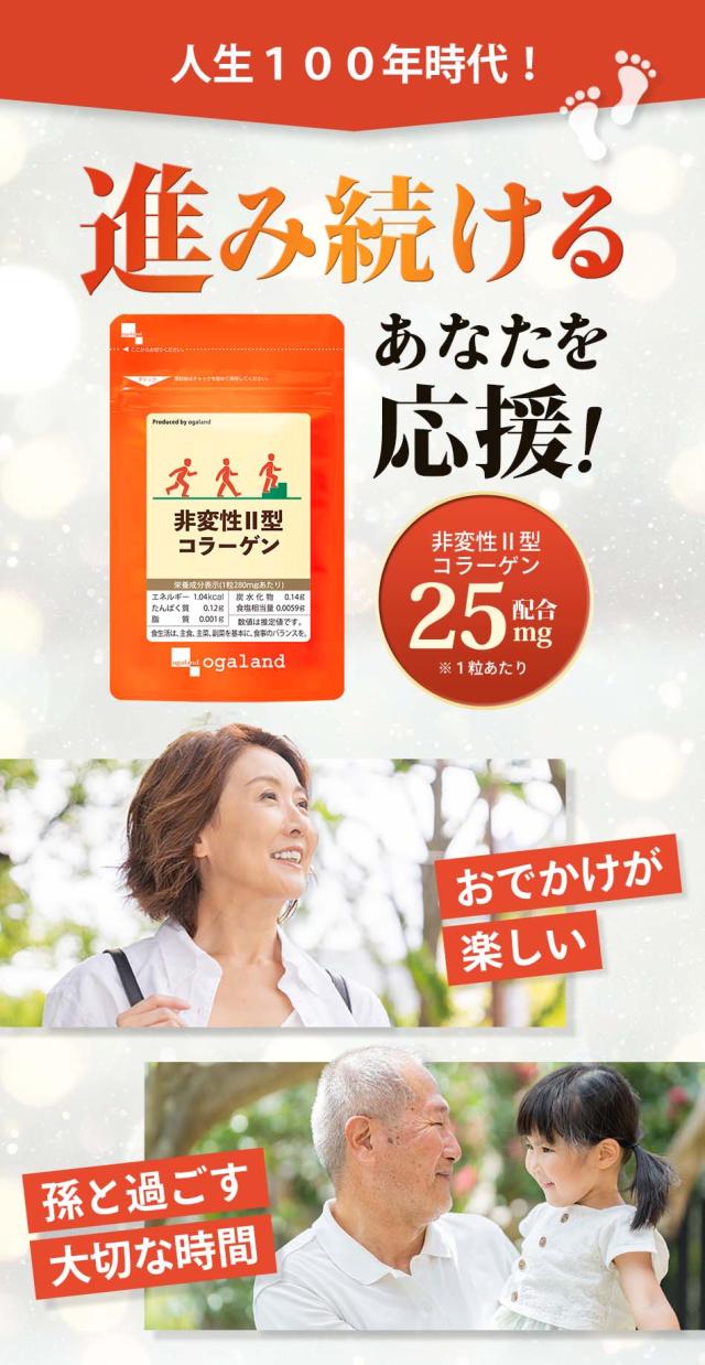 【セール】非変性II型コラーゲン(3個セット・約3ヶ月分)送料無料 ダイエット サプリメント サプリ 非変性2型コラーゲン コラーゲン 軟骨成分 鶏軟骨コラーゲンペプチド 非変性2型コラーゲン 大事な節々に 健康 50代 男性 女性 オーガランド 96100