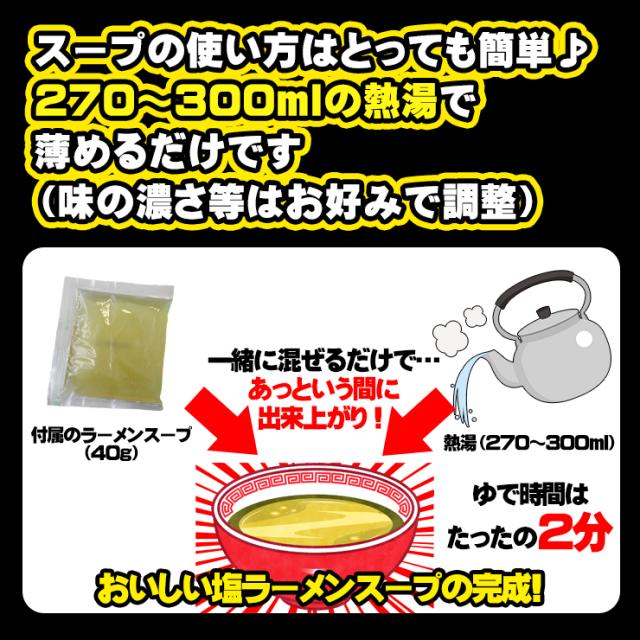 ■商品内容:ちぢれ中華麺・1袋100g×4(4人前)、塩ラーメンスープ・1袋(40g)×4(4人前)