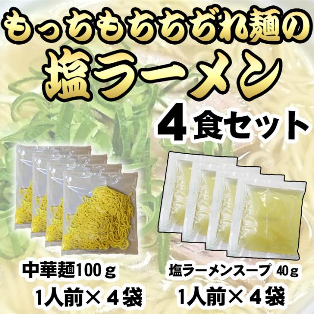 送料無料 しおラーメン もっちもちちぢれ麺の塩ラーメン 4食セット 中細麺 100gX4袋 スープ×4袋 M