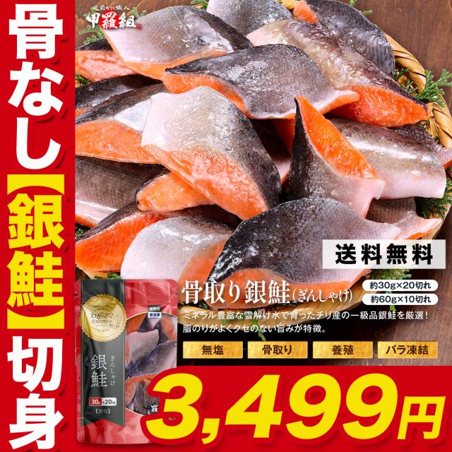 無塩 骨取り 銀鮭 切身 選べる種類⇒(30g×20切れ , 60g×10切れ) 2個で600円OFF!3個で1,200円OFF!4個で2,000円OFF! 鮭 さけ サケ 切り身【わがママ骨取り切身】弁当 朝食 ご飯のお供 agesugi_sgu