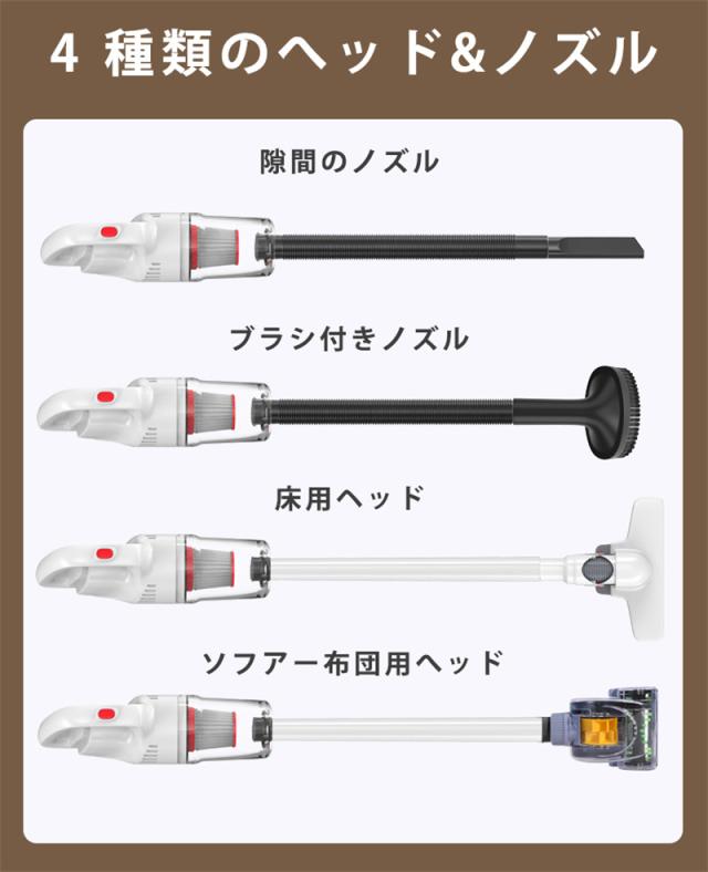 掃除機 コードレス 強力吸引 ハンディクリーナー 2WAY スティッククリーナー USB充電 静音 隙間 5種類ノズル 軽量 小型