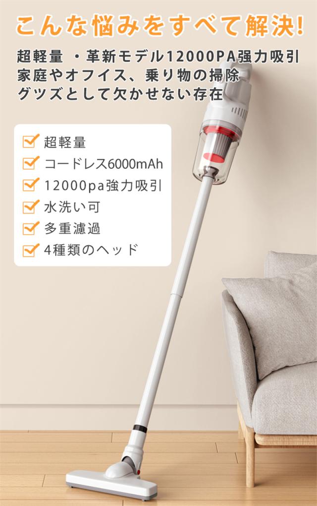 掃除機 コードレス 12000pa 強力吸引 充電式 スティック掃除機 2WAY 電気掃除機 5種類ノズル 軽量 Type-C充電式 一人暮らし フィルター 車用 家庭用 アダプター付属無し 多重濾過 収納便利 静音 壁掛け収納 コンパクト パワフル 業務用 キーボード掃除 車内清掃 家具 家庭用 多機能 長時間稼働 ペット毛掃除 オフィス 会議室 吸い込む 乾湿両用 卓上掃除機 プレゼント ギフト