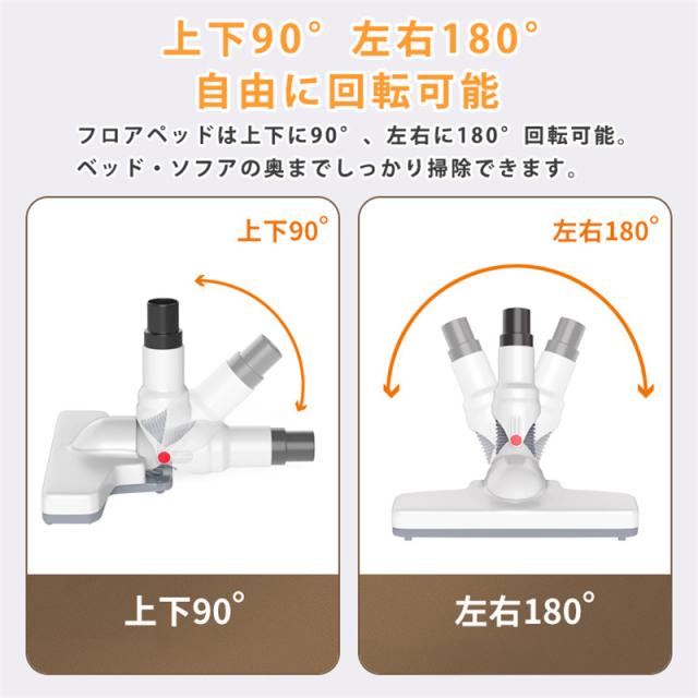 4種類のヘッド&ノズルと延長パイプで自由に組み立て。床用ヘッドは上下左右を自在に回転可能、ベッド・ソファの奥までしっかりキャッチ。