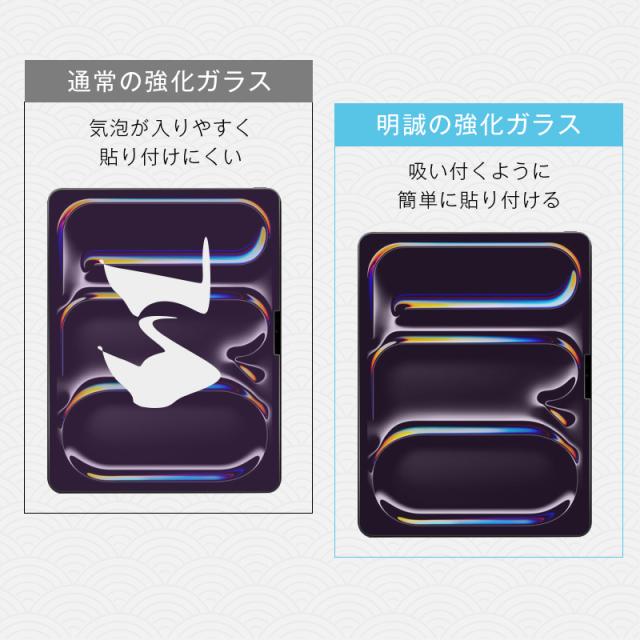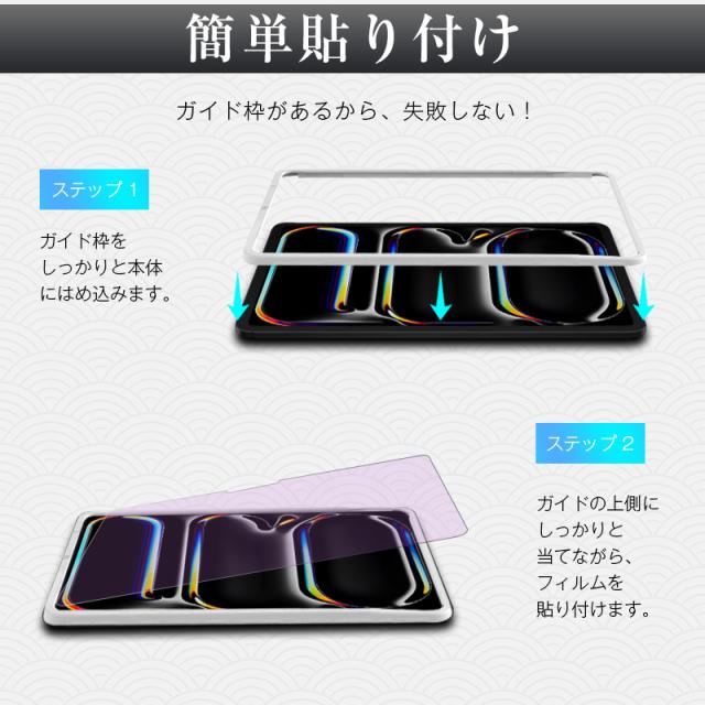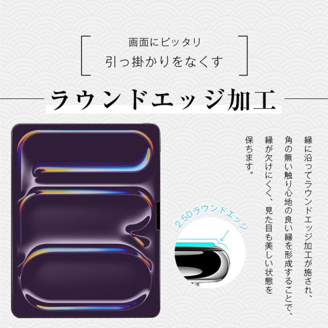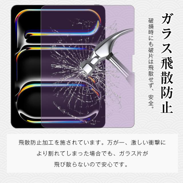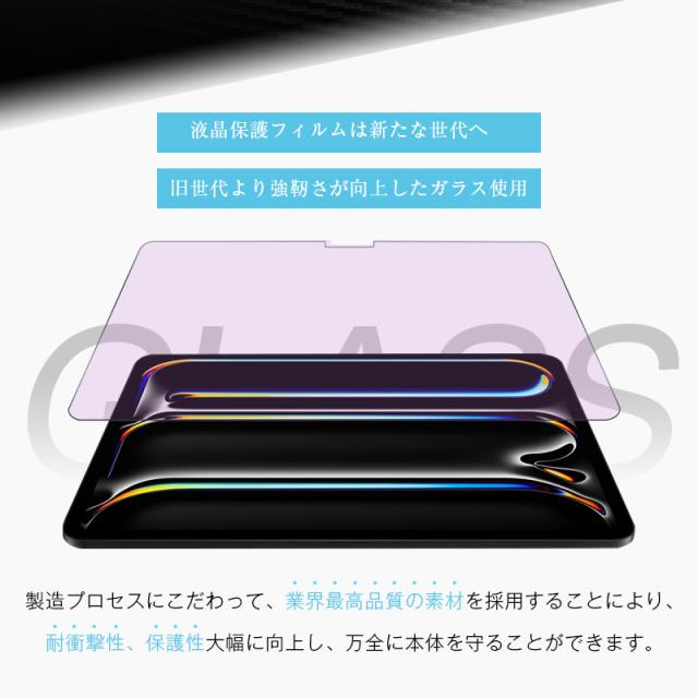 13インチiPad Pro(M4)/(M5) ブルーライトカット 強化ガラスフィルム ラウンドエッジ加工 クリア仕様 0.3mm 超薄型 表面硬度9H 疎油 撥水