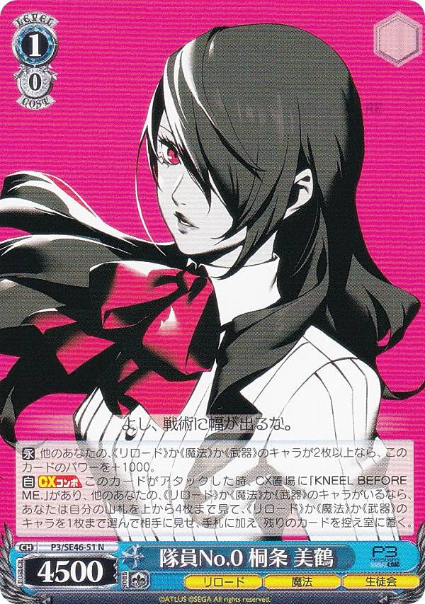 ヴァイスシュヴァルツ P3/SE46-51 隊員No.0 桐条 美鶴 (N ノーマル) プレミアムブースター ペルソナ3 リロード