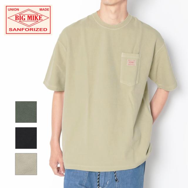 BIG MIKE ビッグマイク ピグメント 鹿の子 S/S Tシャツ 102428710 半袖 メンズ アメカジ ヴィンテージ ブラック サンド オリーブ ピグメント加工 ブランド 無地 ロゴ ポケT 鹿子素材 春服 夏服 プレゼント ブランド 綿100% ベージュ グリーン クルーネック ブランドロゴ トップス ビンテージ ギフト カットソー ビックマイク 春 夏 カジュアル 大人