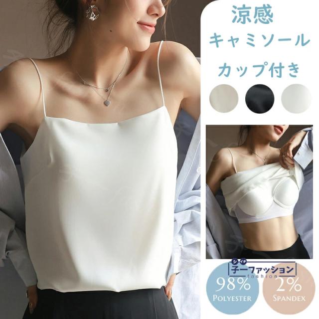 カップ付きキャミ キャミソール 春新作 涼感 涼しい ブラトップ レディース インナー 肌着 サテン サテンキャミソール ブラ不要 シルクタッチ 吸汗速乾 カップ付きキャミソール 秋冬 バレンタイン