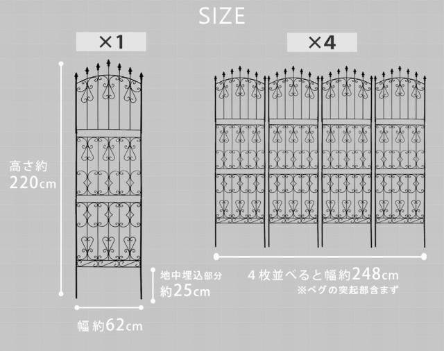 フェンス アイアン ローズフェンス 高さ220cm ハイタイプ 4枚組 ( ガーデンフェンス インテリア ガーデニング雑貨 アンティーク おしゃれ ガーデニング スチール ディスプレイ オブジェ 置物 庭 ガーデングッズ )