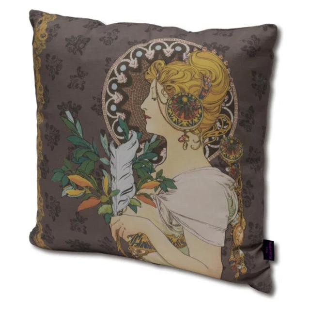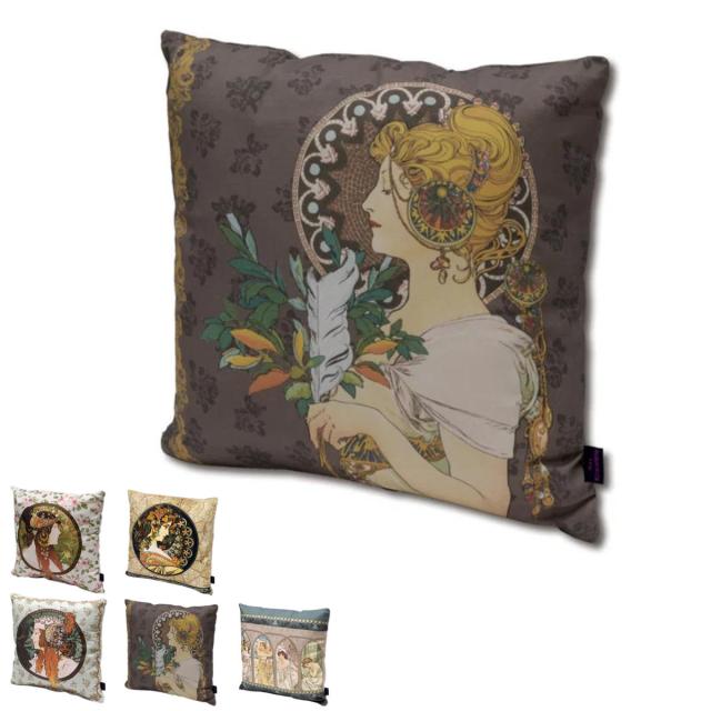 クッションカバー 名画クッションカバー 45×45cm アールヌーボー ( クッション カバー 替えカバー 角型 名画 作品 雑貨 女性 つた 蔦 ブルネット ブロンド 羽根 時の流れ ローズ インテリア グッズ おしゃれ プレゼント )