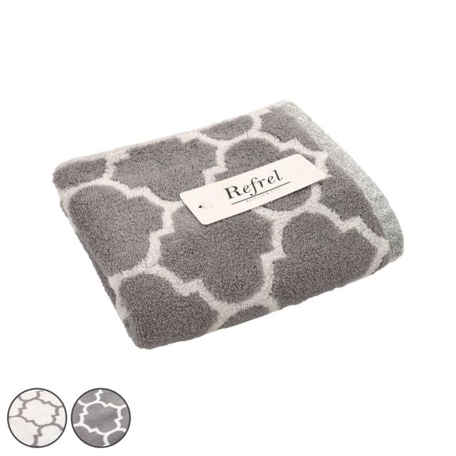 丈夫な30番手双糸を使用したリフレルシリーズのフェイスタオルです。綿100%で使い心地が柔らかく、毛羽が発生しにくいので永くお使いいただけます。キッチンや浴室、洗面所など家庭で使いやすいサイズです。上品なカラーとデザインでどんな空間にもマッチします。