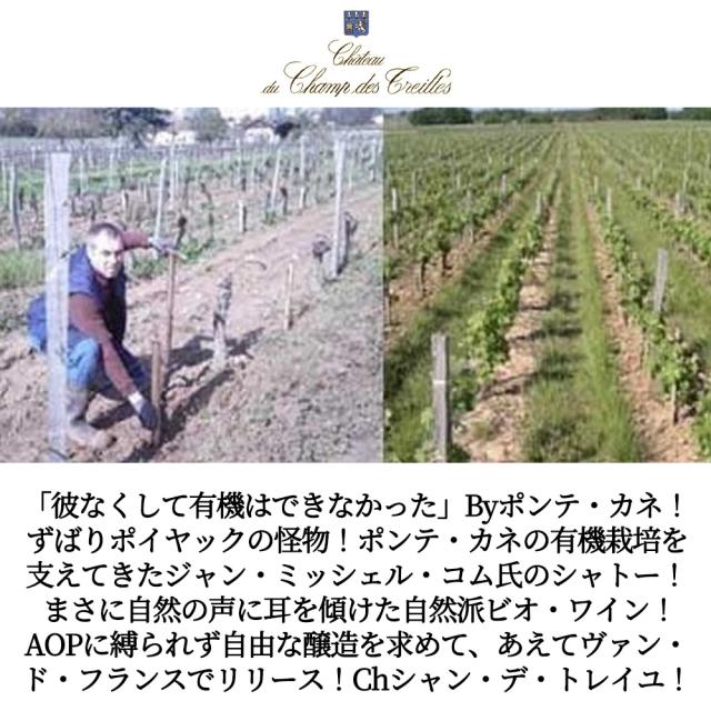 「彼なくして有機はできなかった」Byポンテ・カネ! ずばりポイヤックの怪物!ポンテ・カネの有機栽培を 支えてきたジャン・ミッシェル・コム氏のシャトー! まさに自然の声に耳を傾けた自然派ビオ・ワイン! AOPに縛られず自由な醸造を求めて、あえてヴァン・ ド・フランスでリリース!Chシャン・デ・トレイユ!